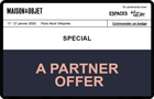 Les informations personnelles renseignées sur ce formulaire sont recueillies sur la base de l'intérêt légitime et enregistrées dans un fichier informatisé par SAFI (8 rue Chaptal CS 50028 75442 Paris cedex 09 France). Elles sont nécessaires pour vous fournir les services proposés sur nos plateformes. En vous inscrivant, vous êtes également susceptible de recevoir des informations pratiques ou promotionnelles relatives à nos activités (MAISON&OBJET, MAISON&OBJET PARIS, MOM – MAISON&OBJET AND MORE, PARIS DESIGN WEEK). Vos données personnelles peuvent être utilisées conformément à la Politique de confidentialité de SAFI. Pour toute précision sur la collecte et le traitement de vos données personnelles, nous vous invitons donc à consulter la notice Politique de Confidentialité.